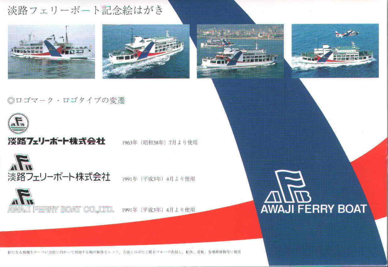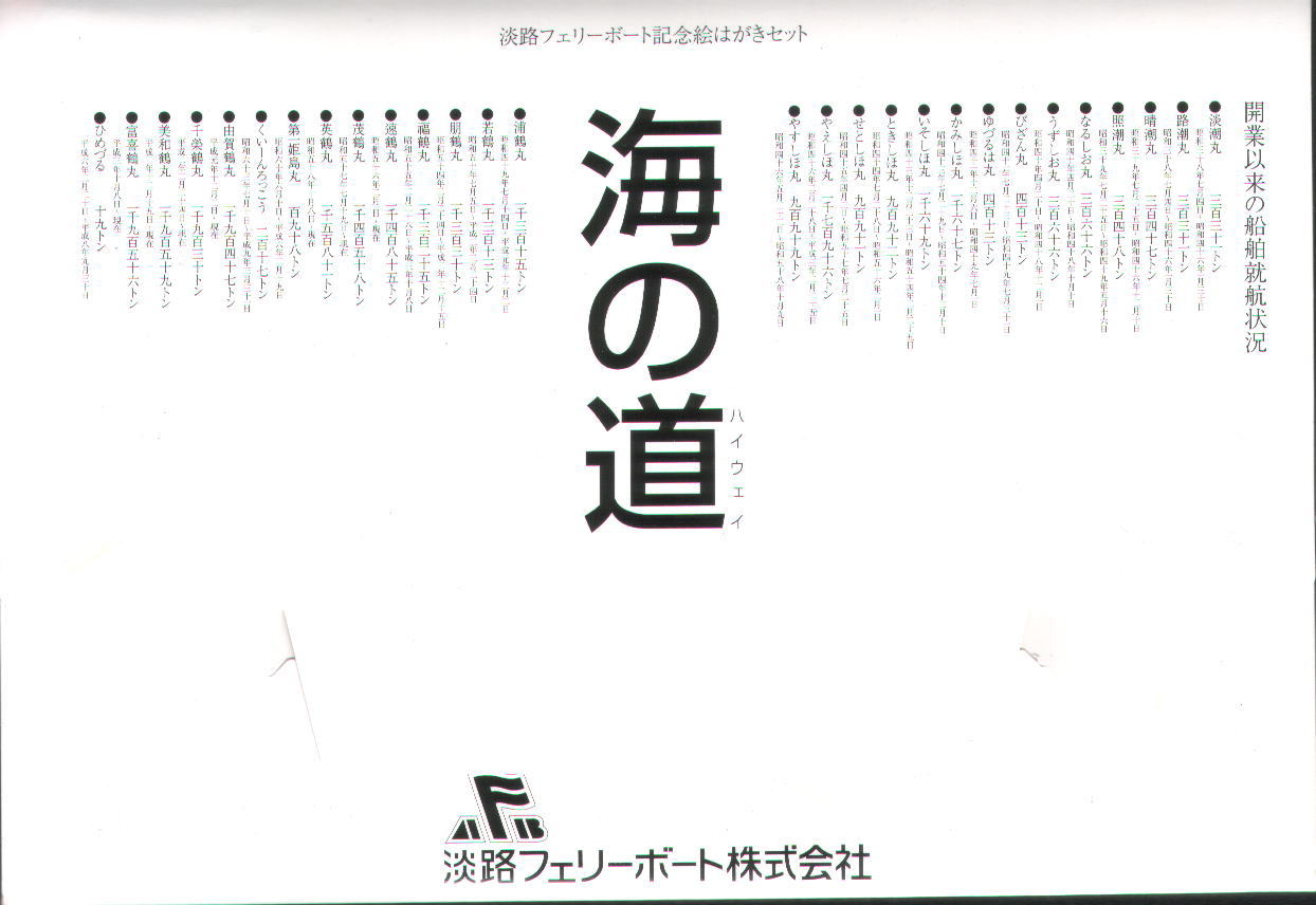 淡路フェリーボート最終便の乗客に配られた記念の絵葉書セットです。