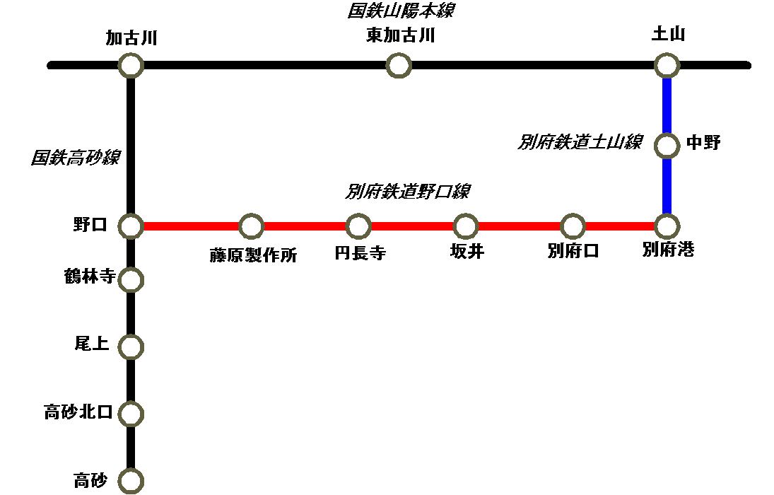 かつて、国鉄山陽本線 土山駅から別府港を経由して国鉄高砂線 野口駅までを