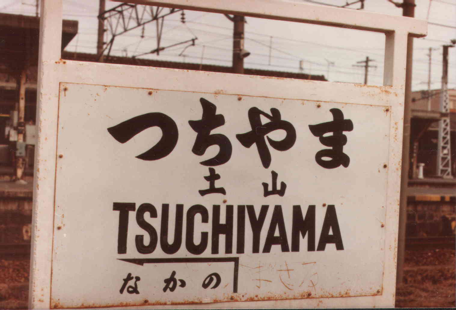 | 国鉄山陽本線土山駅構内に同居していた別府鉄道の土山駅 | 左の看板の裏側 |