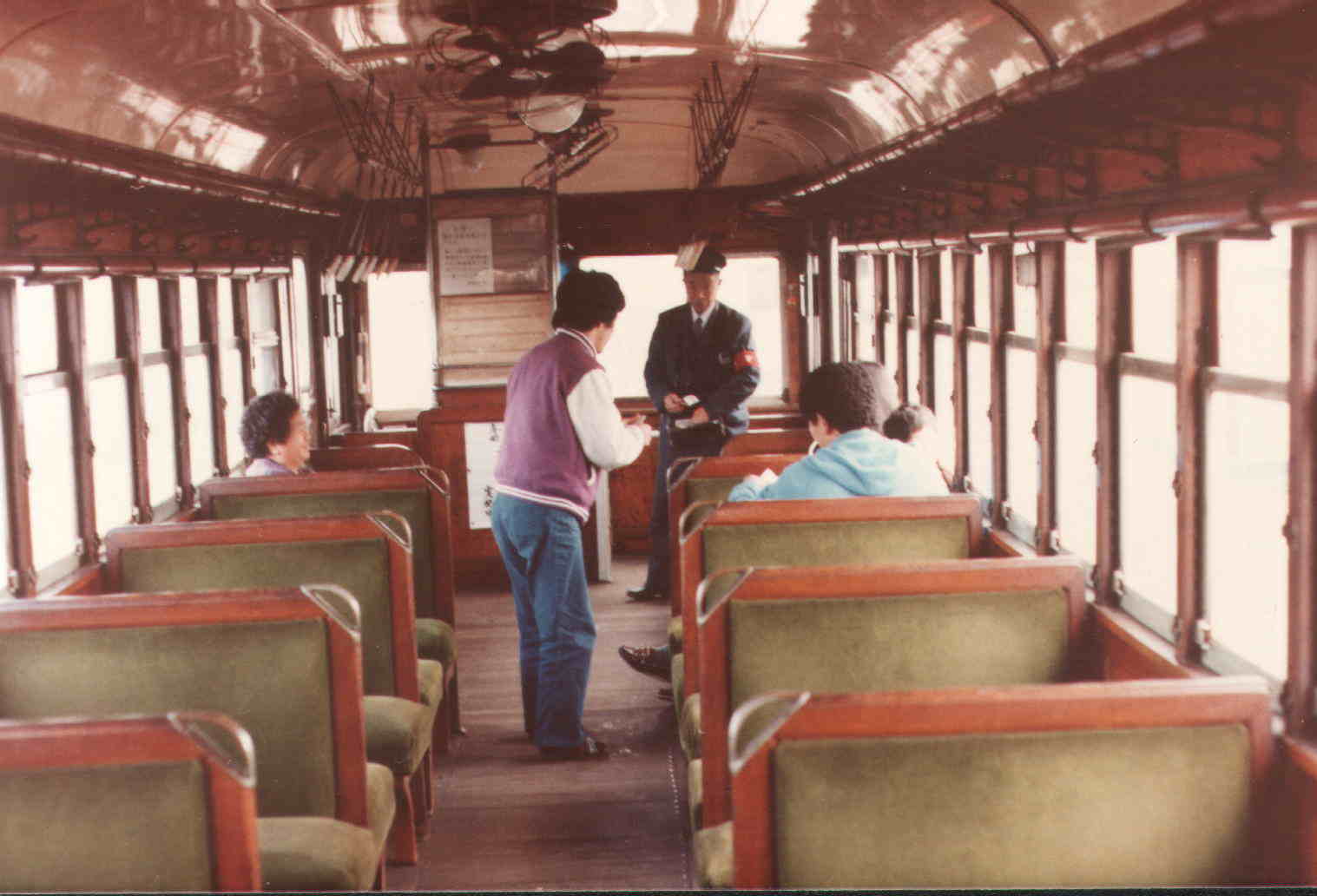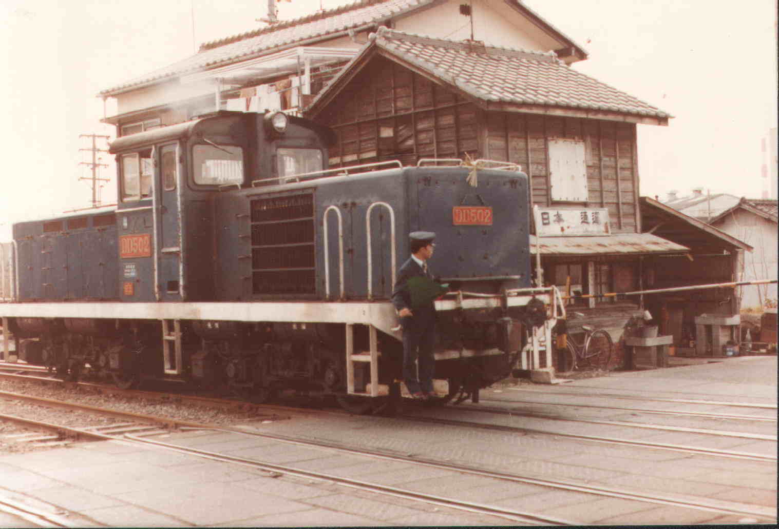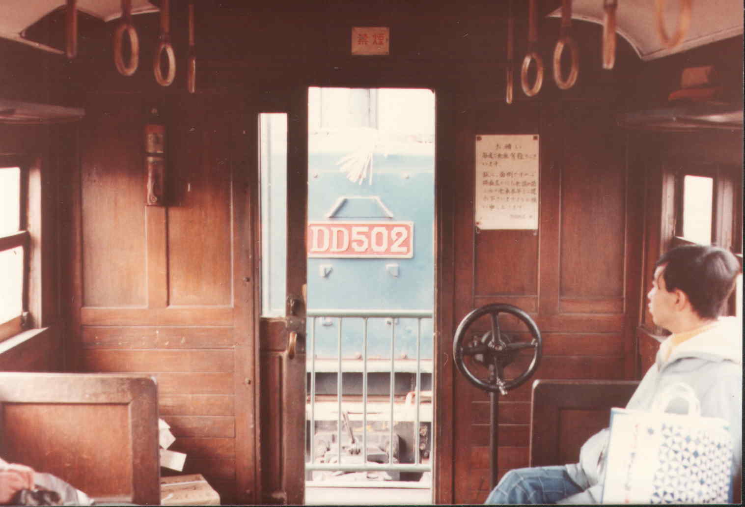 | 土山と別府港を結ぶDD502機関車 | DD502に牽引されるハフ7の車内 |